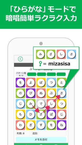 マス内の文字はWebサービスごとに変わっていき、覚えるのは最初に設定したマスの場所と順番だけ。複数のWebサービスで管理しているパスワードを覚えたり、メモする必要はありません。